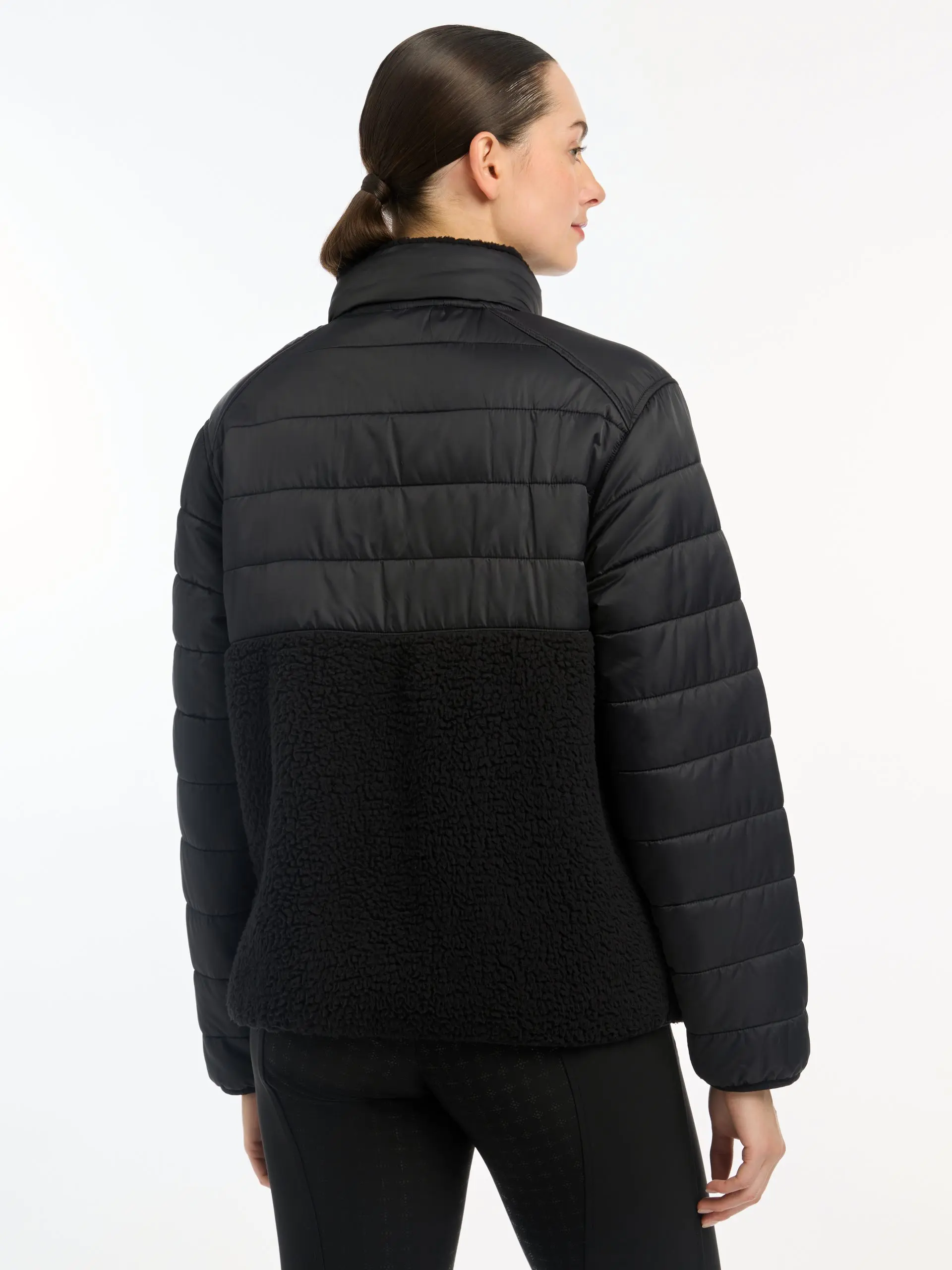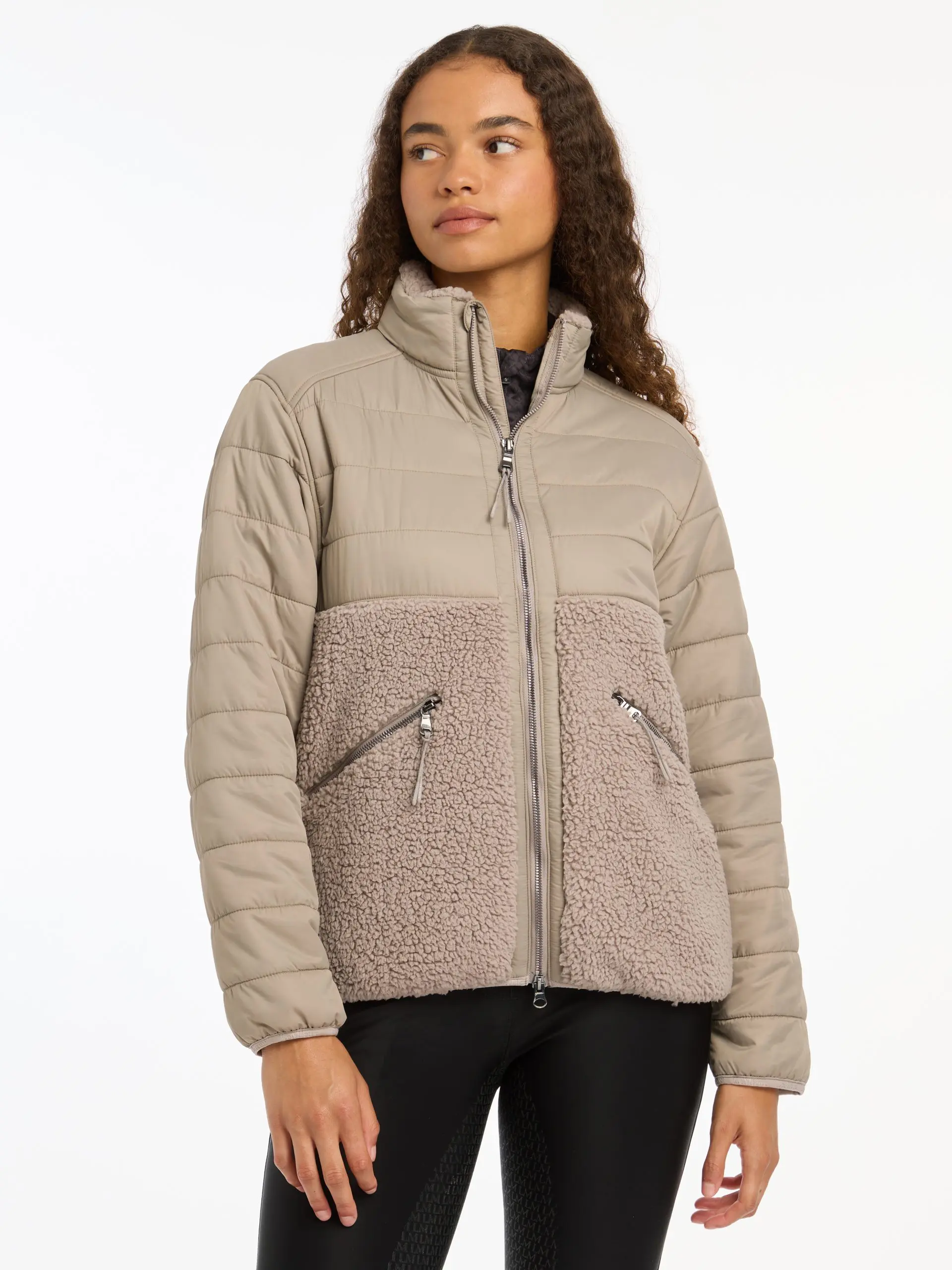 De Alissa Hybrid Fleece is een eigentijds stijlstatement en combineert warme hybride fleece met gewateerde stof.