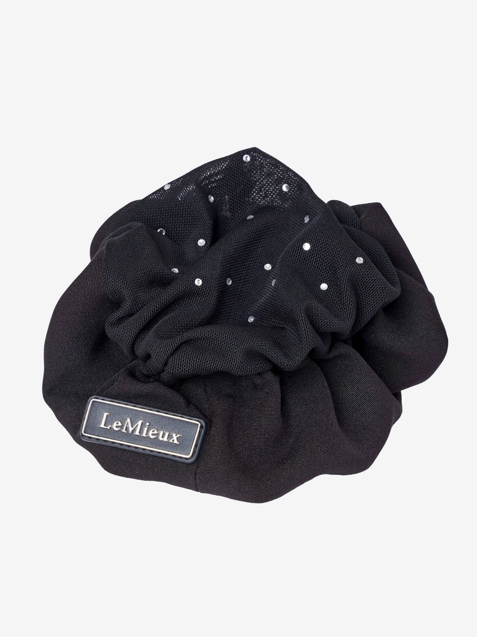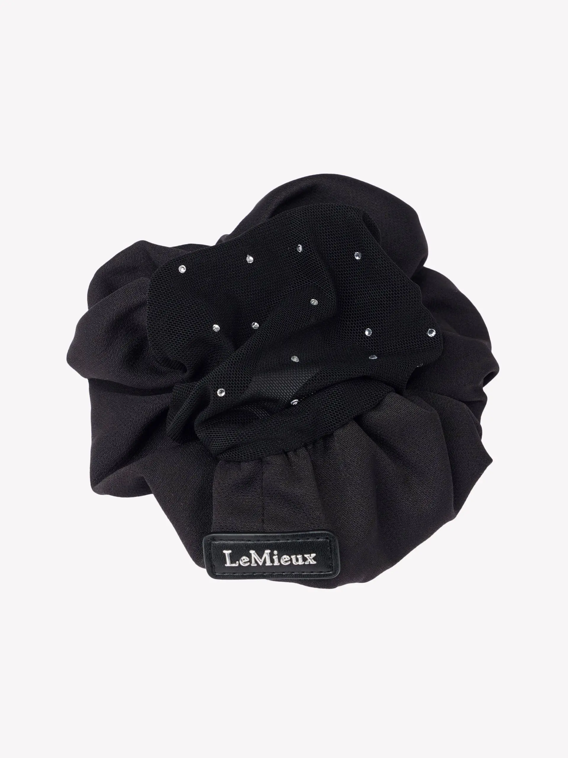 Elegante satijnen haarscrunchie met een LeMieux logobadge. Een ingenaaid haarnetje versierd met sprankelende kristallen houdt je haar netjes tijdens het rijden, ideaal voor shows en evenementen. Twee verborgen klemmetjes bevestigen stevig aan je haar.