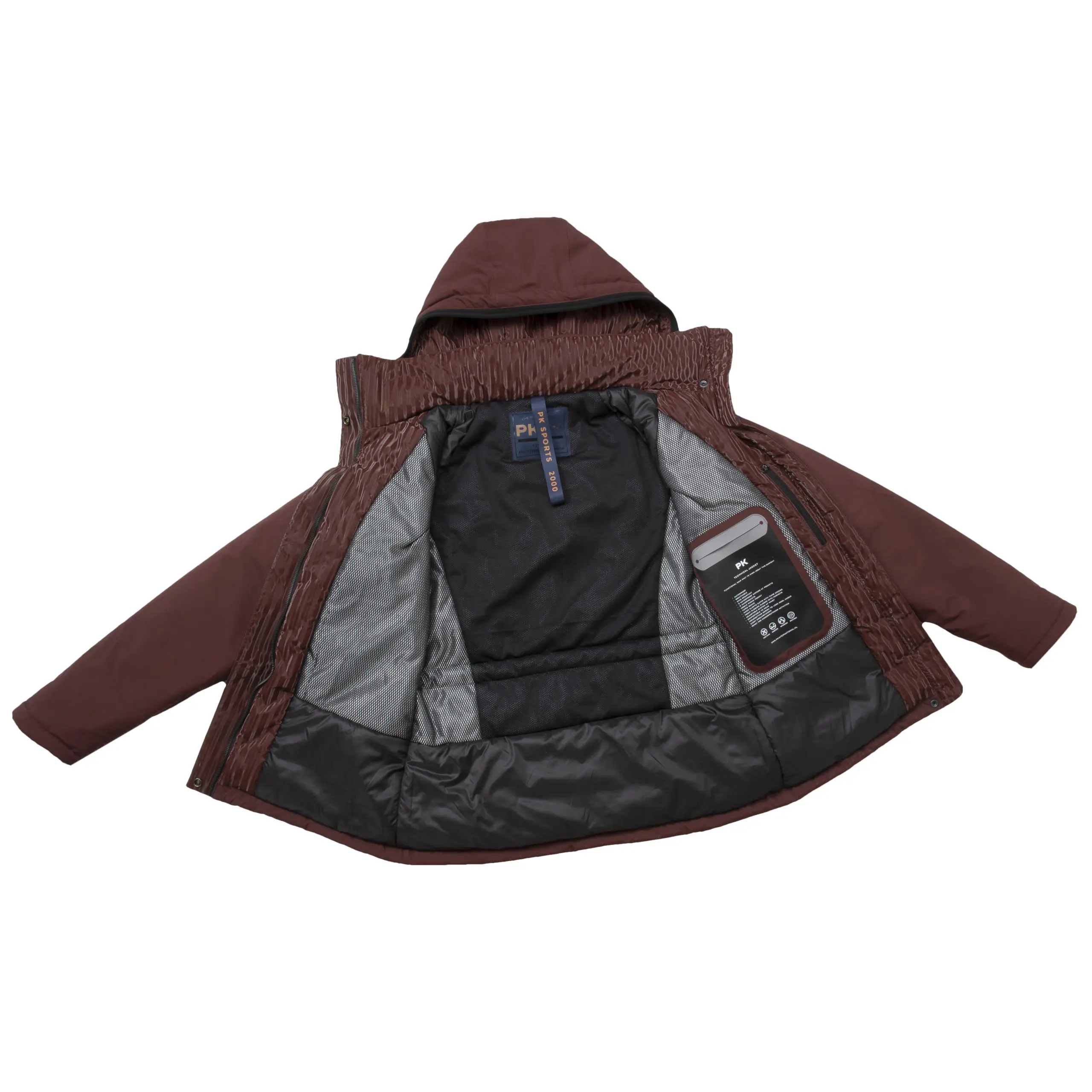 Functionele, waterdichte winterjas met afneembare capuchon. Deze jas heeft een glimmende 3D-stof in de binnenzijde van de capuchon voor een luxe uitstraling. Het tunnelkoord in de zakken zorgt voor extra taillering, de cuffs met duiminsteek bieden extra comfort en de capuchon kun je gemakkelijk afritsen. De naden zijn volledig getapet, hierdoor is de jas waterproof, windproof en ademend.