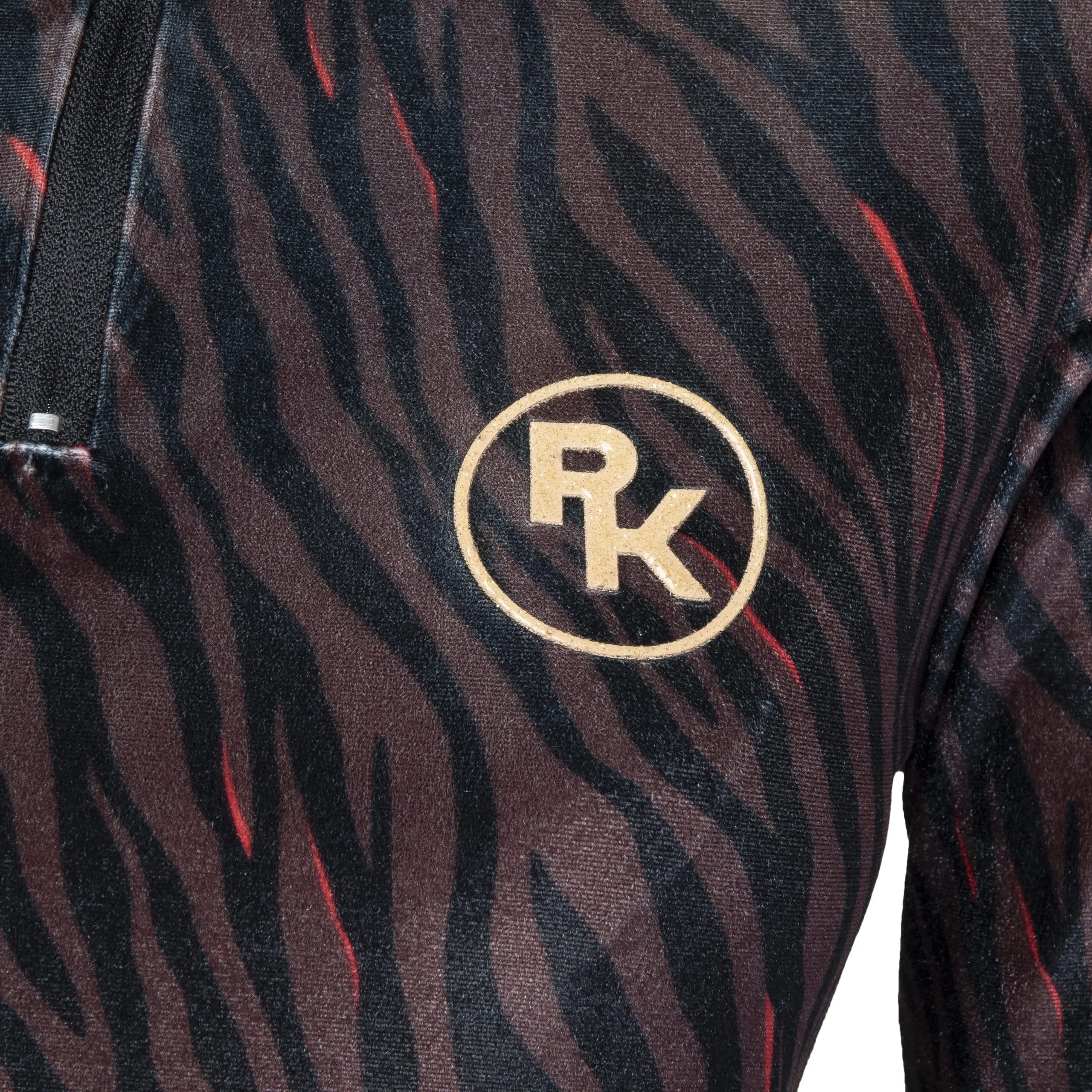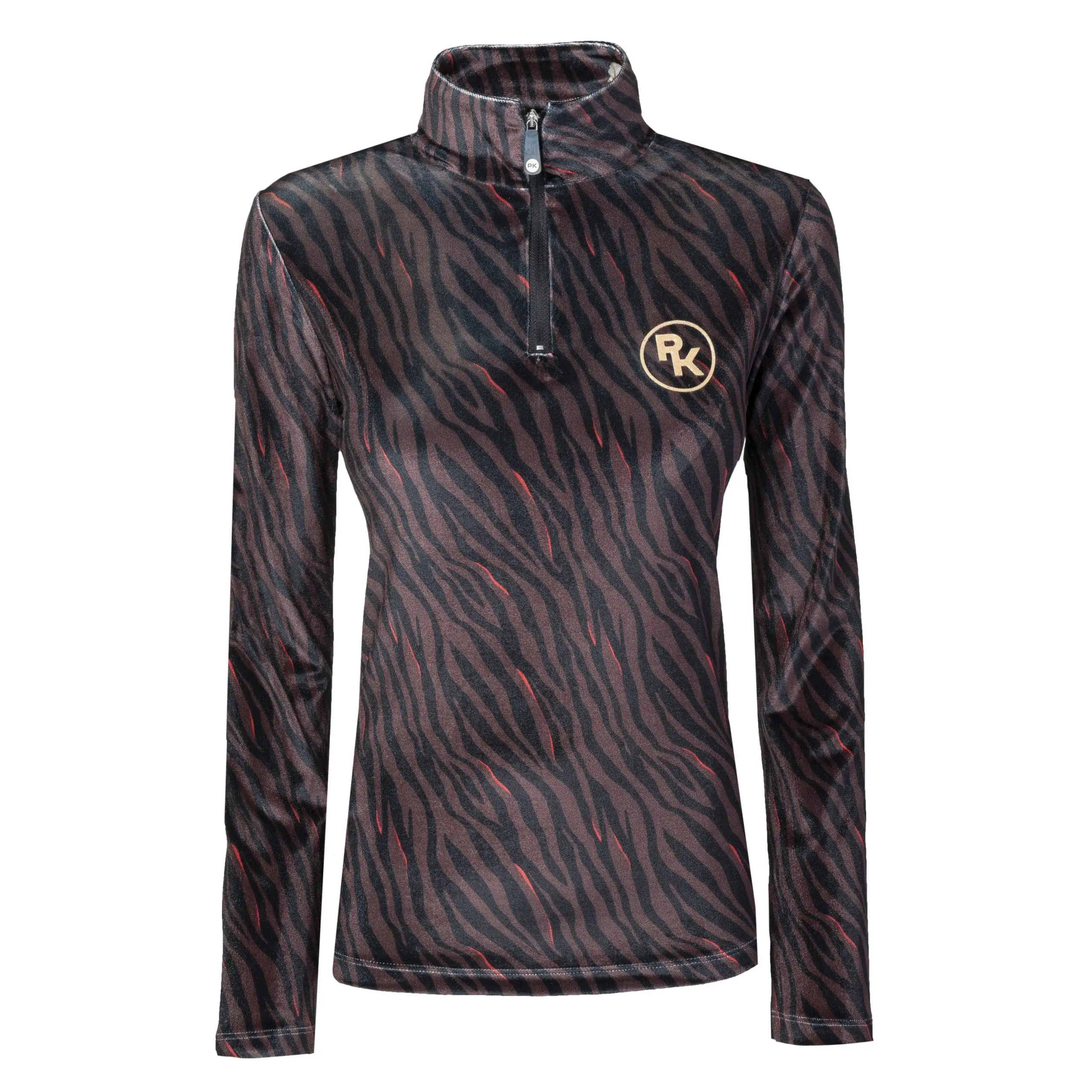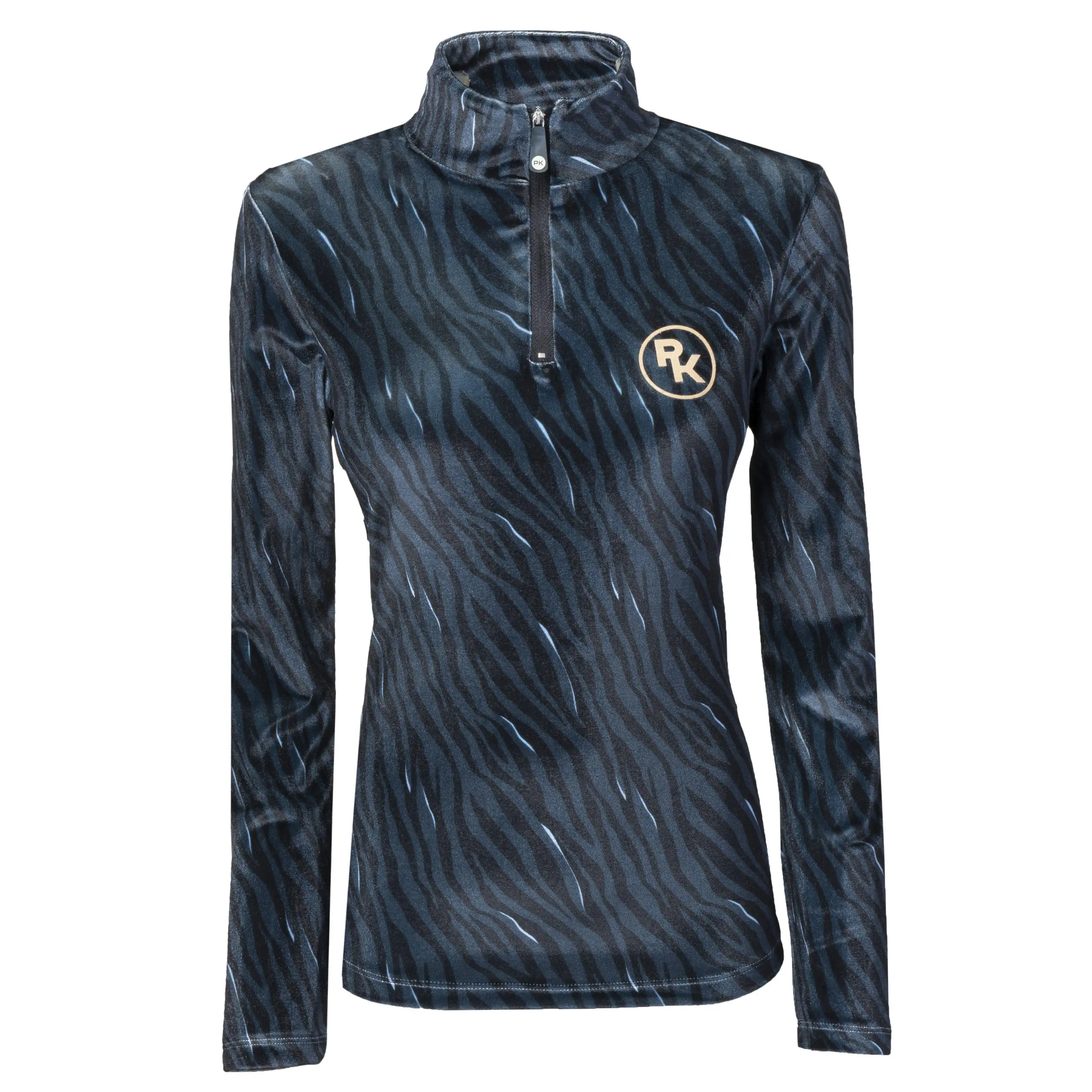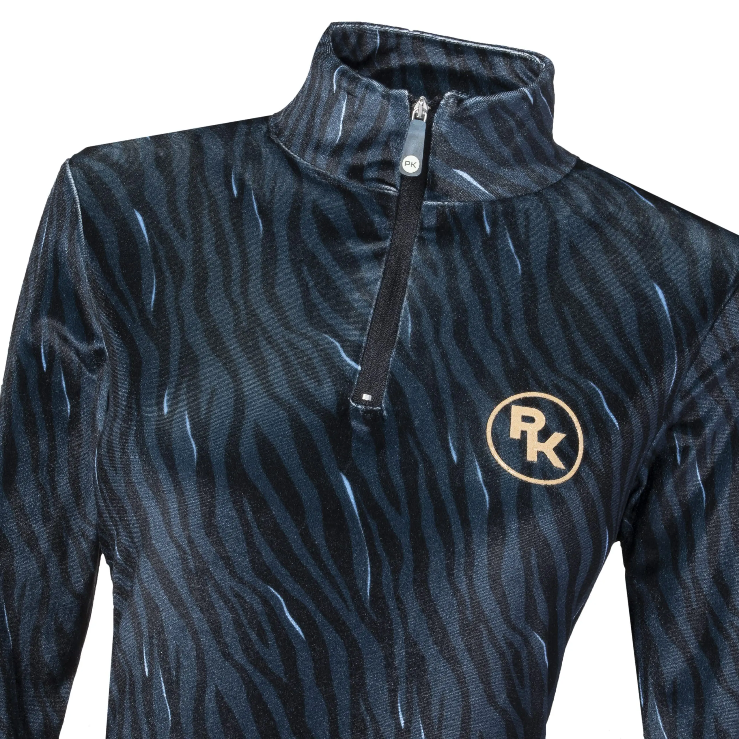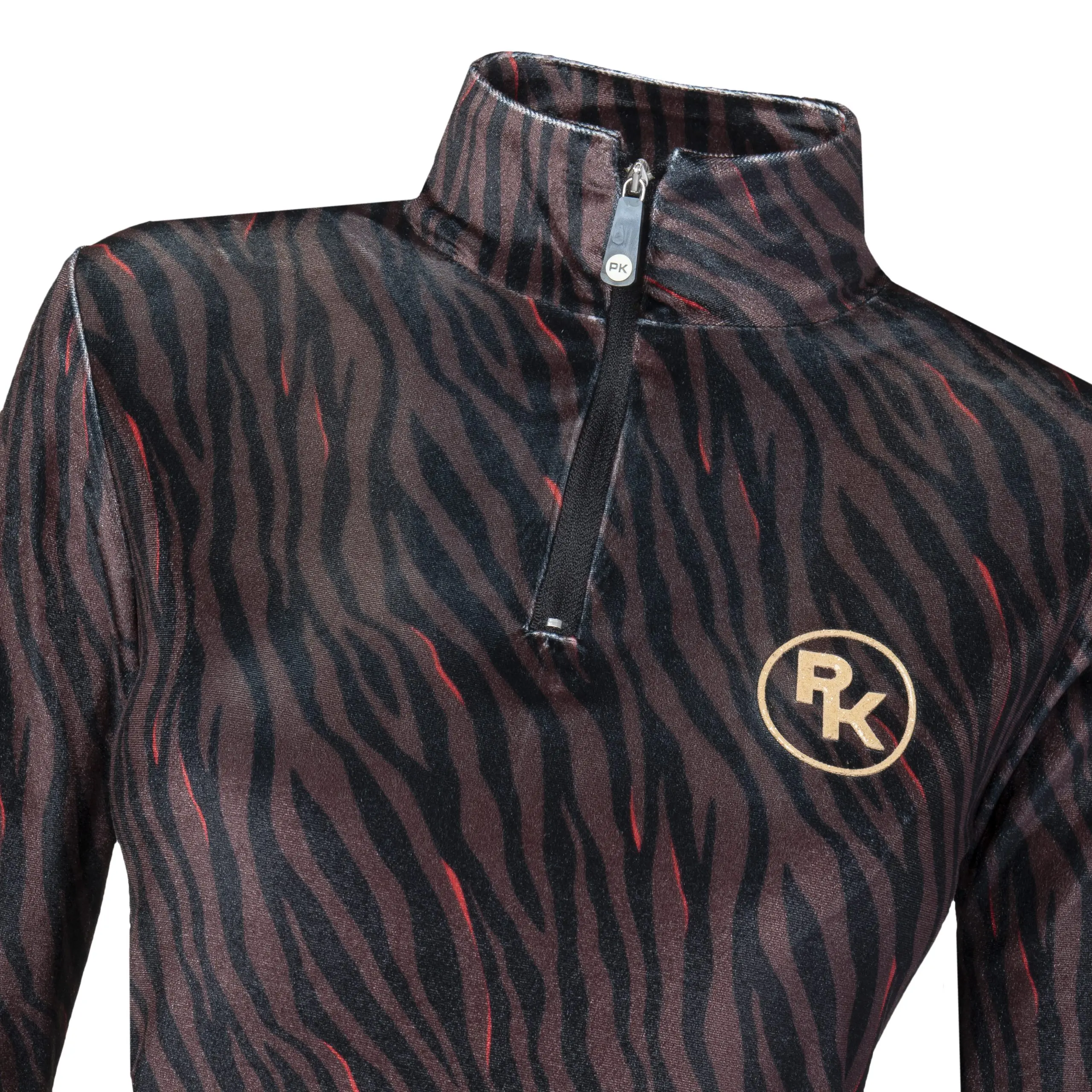 Een technisch velvet trainingsshirt uitgevoerd in de sprekende zebra-print. Dit shirt heeft een fijne hoge kraag met een rits voor extra comfort. De kleine PK-glitterprint op de borst maakt het helemaal af. Dit shirt is heel fijn om te combineren met de andere items uit de collectie.