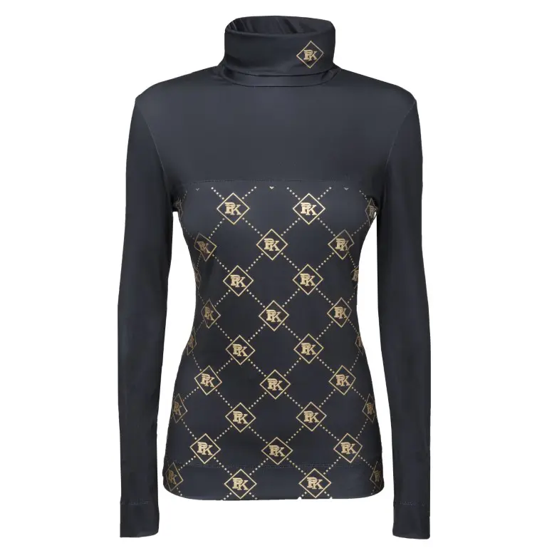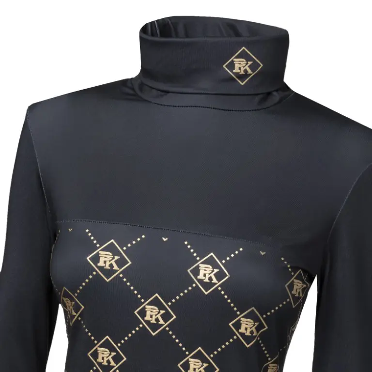 Een technisch shirtย  van de inmiddels bekende Meryl stof. Deze stof is sneldrogend, UV-werend en ademend. Een hele fijne eerste basislaag om lekker warm te blijven. Het shirt is voorzien van unieke all-over print, tone in tone of in het lichtgoud afgewerkt. De hoge kraag met kleine PK print geeft een warm gevoel.