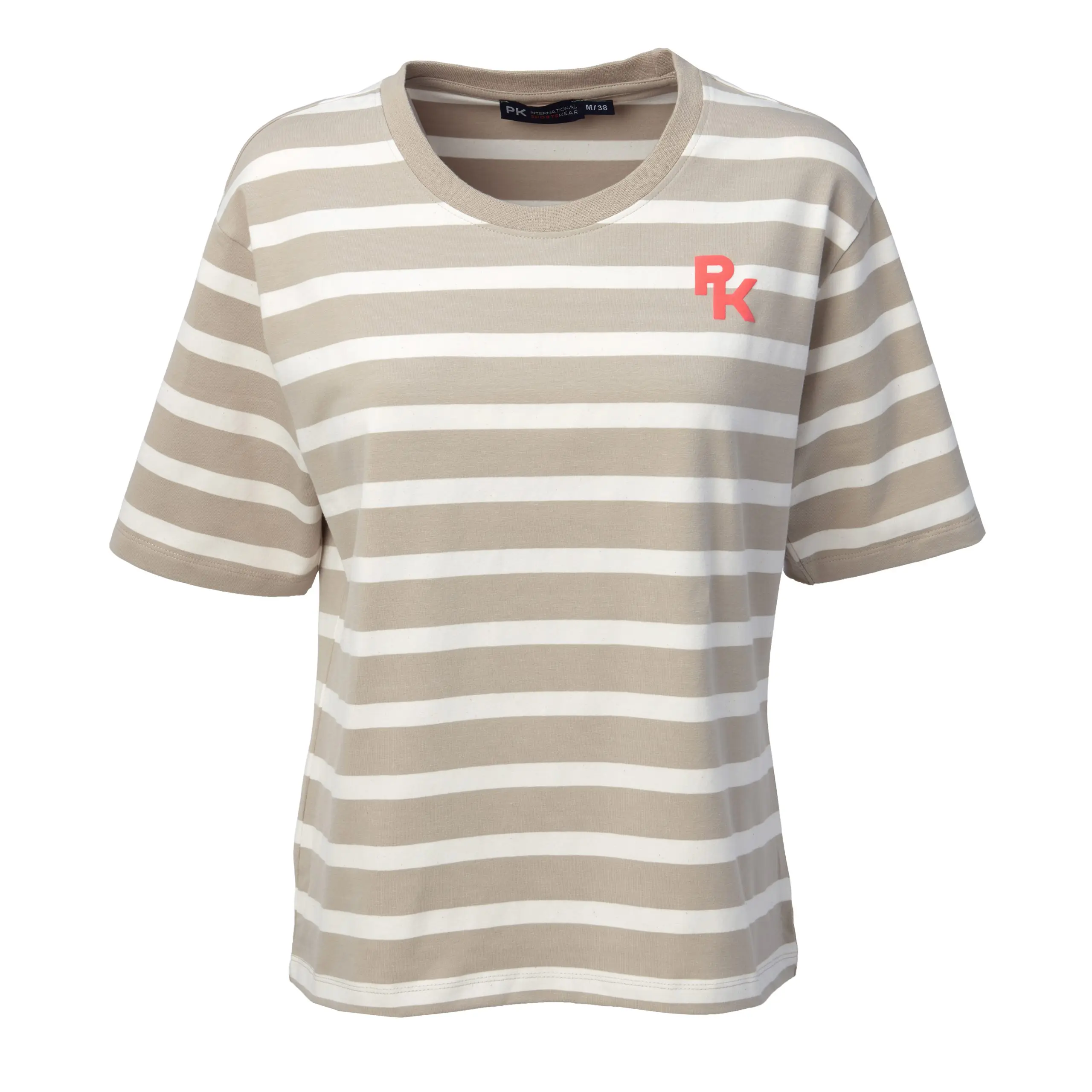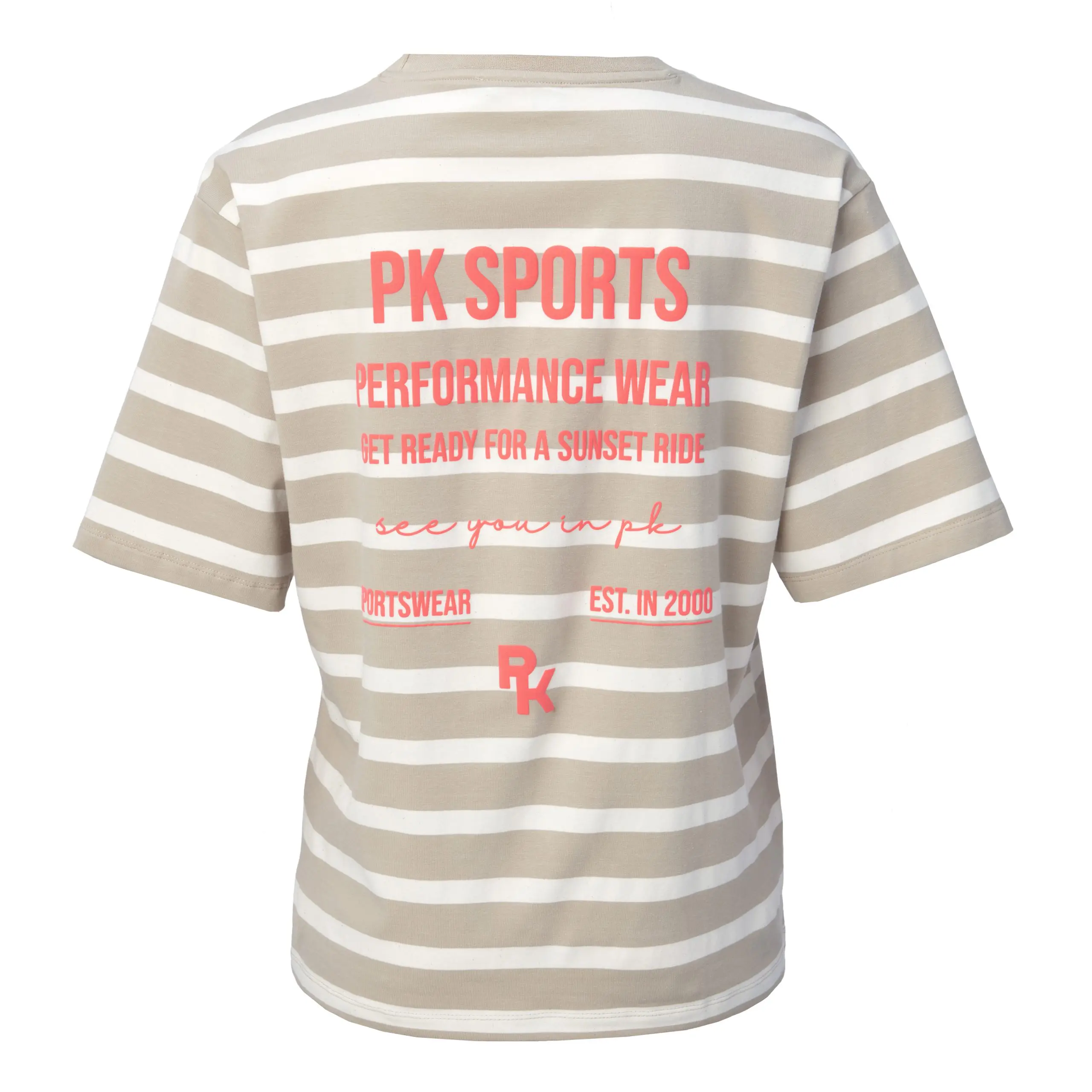 Dit katoen-elastaan T-shirt met streepjes dessin is een comfortabele essential met een sportieve twist. De loose fit en zachte, ademende stof zorgen voor een relaxte pasvorm, ideaal voor dagelijks gebruik. De fluo puff print op de achterkant geeft het shirt een opvallend detail dat helemaal past bij de zomer.