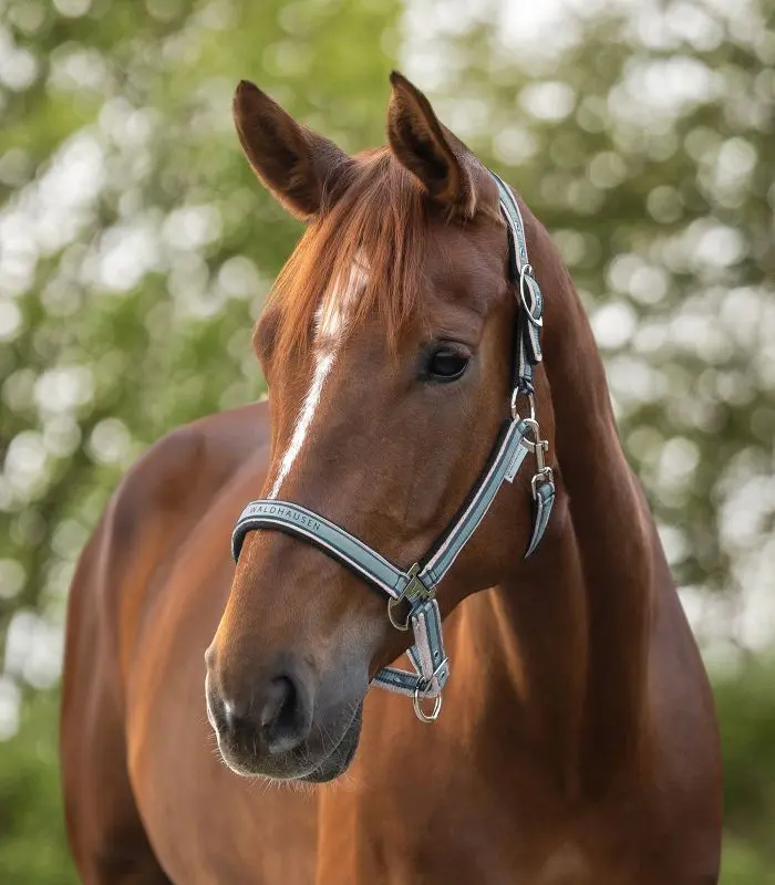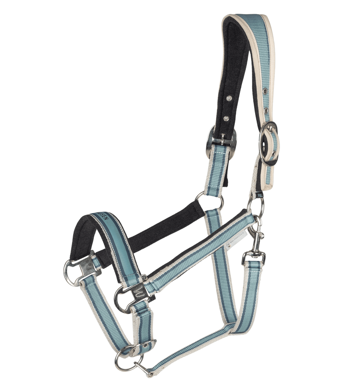 Quality halter with soft padding on neck and nose area as well as on the cheekpieces. Anatomical headpiece for pleasant wearer comfort. Multiple adjustments possible on chin strap and headpiece. With silver-coloured metal fittings.