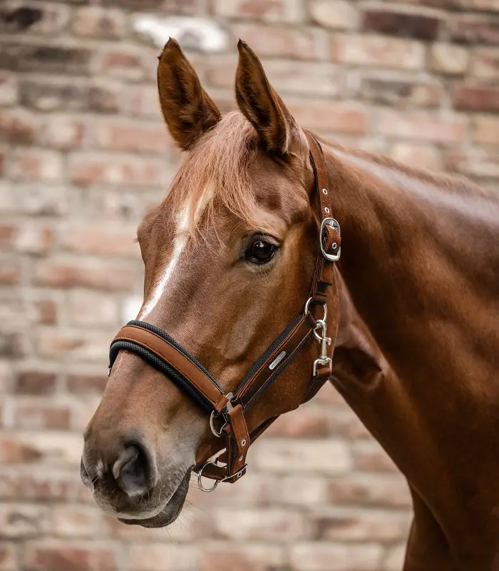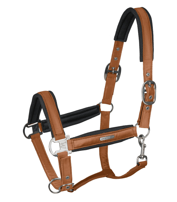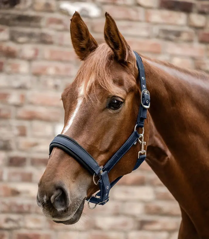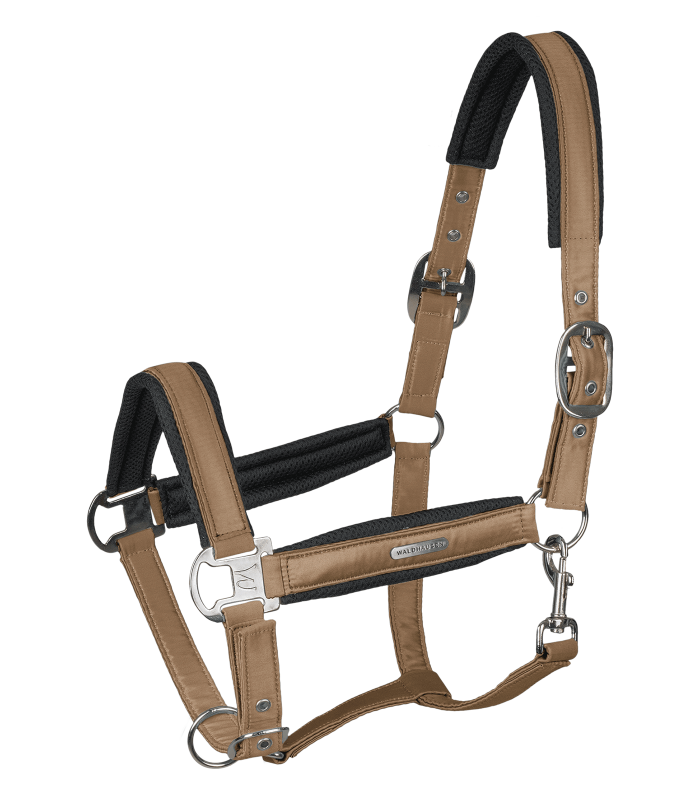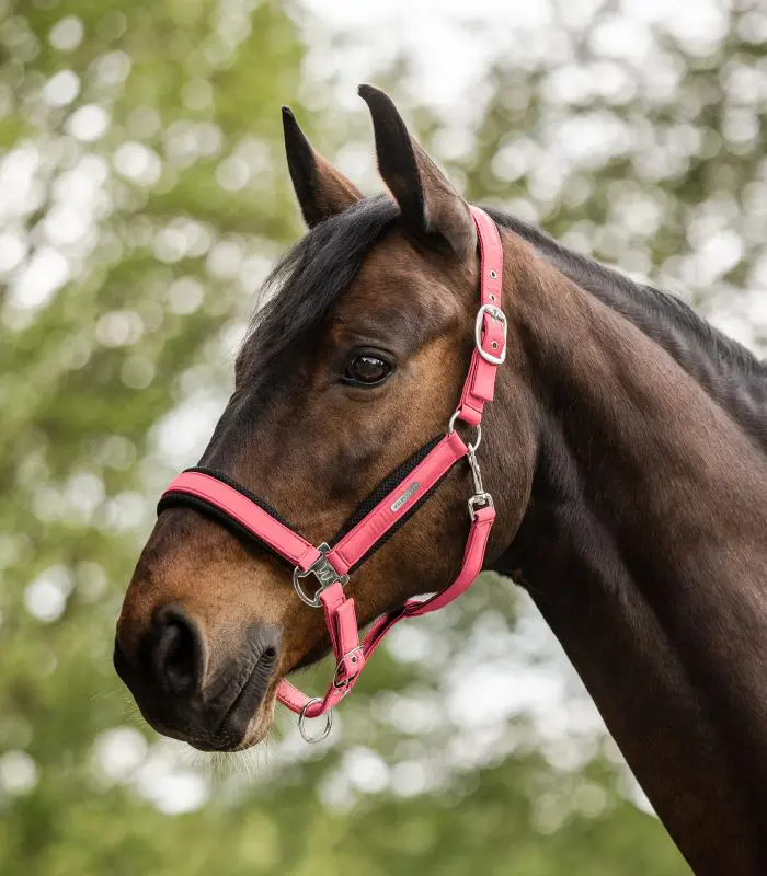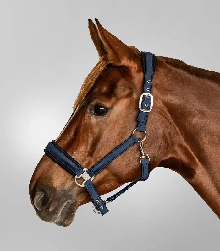Quality halter, with an elegant satin covering. The halter is lined with mesh and so provides a high degree of wearer comfort. Headpiece adjustable on both sides, as well as being adjustable in chin area on one side.
