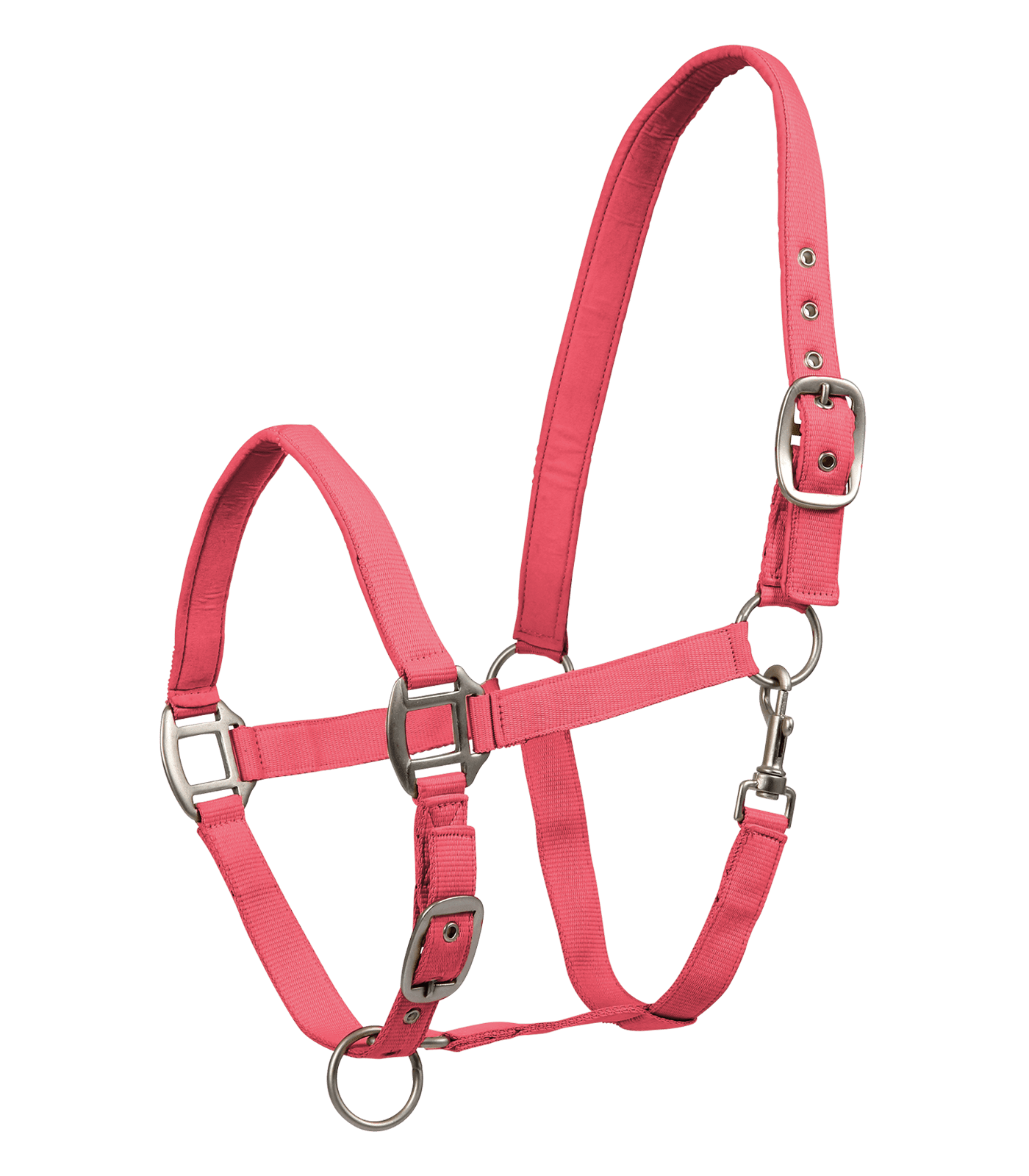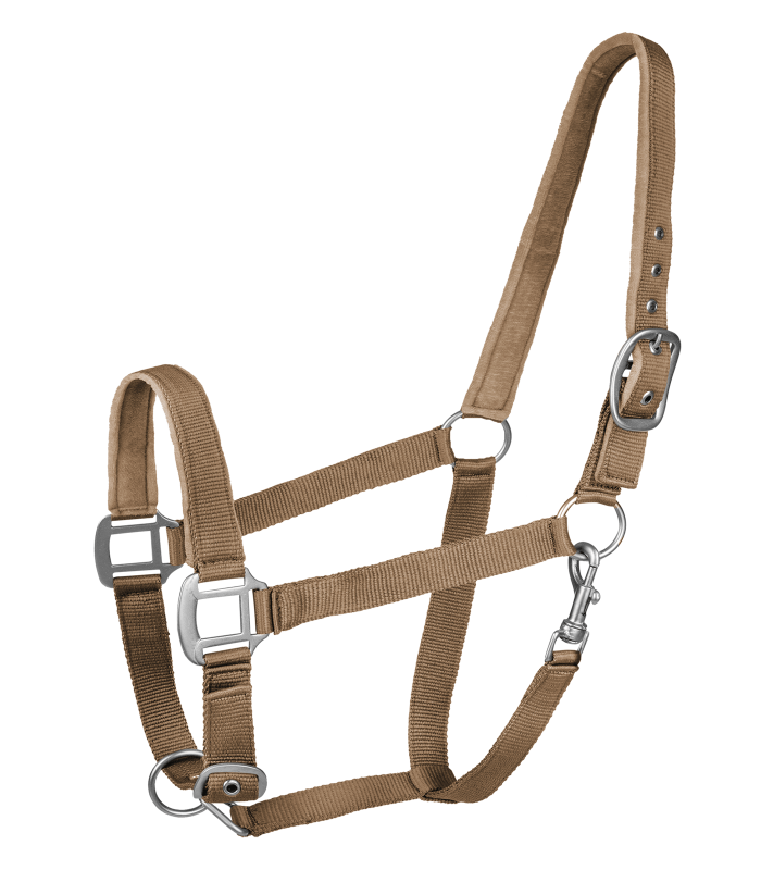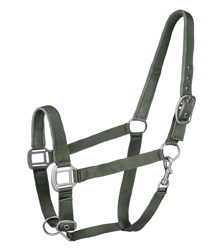 Smooth halter with a softly lined nose- and poll strap. Multi adjustable poll- and curb strap. Solid, dull coloured fittings.