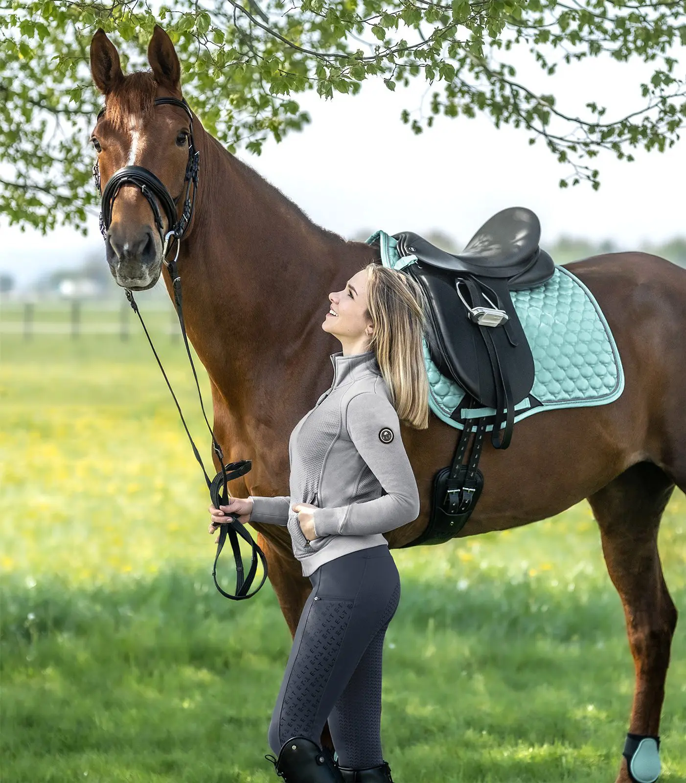Elegant, quality saddle pad in silk look. The additional girth reinforcement ensures optimum protection. The functional underside ensures optimum breathability. 10 mm foam and 200g/mยฒ padding ensure optimum pressure distribution. With short saddle loops.
